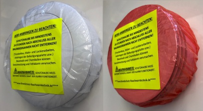 Oder die Rauchmelder werden mit Farbe überstrichen wodurch die Raucheintrittsöffnung das Eindringen des Rauchs nicht mehr möglich macht und somit der Rauchmelder unbrauchbar wird.